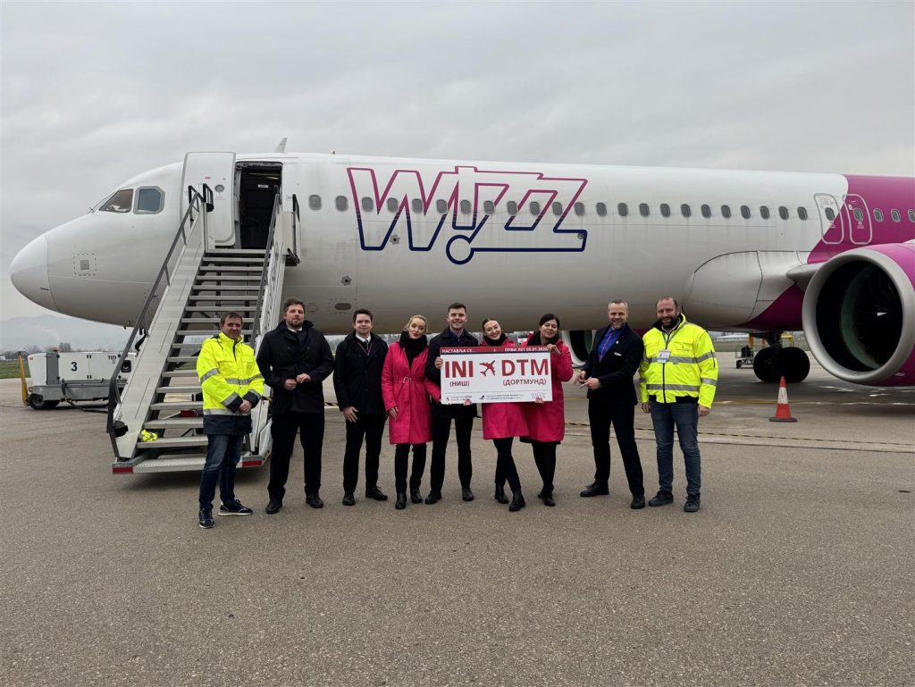 Na aerodromu u Nišu je danas dočekan i ispraćen prvi let na relaciji Dortmund – Niš – Dortmund. Počev od danas, putnici će moći da lete iz Niša do Dortmunda 2 puta nedeljno, ponedeljkom i petkom. Avio-kompanija koja će realizovati letove do Dortmunda je Wizz Air. Podsećamo da je ova kompanija već realizovala pomenuti let u periodu od 20. avgusta 2016. godine pa sve do februara 2024. godine, ali se evo nakon skoro dve godine pauze let ponovo uspostavlja.